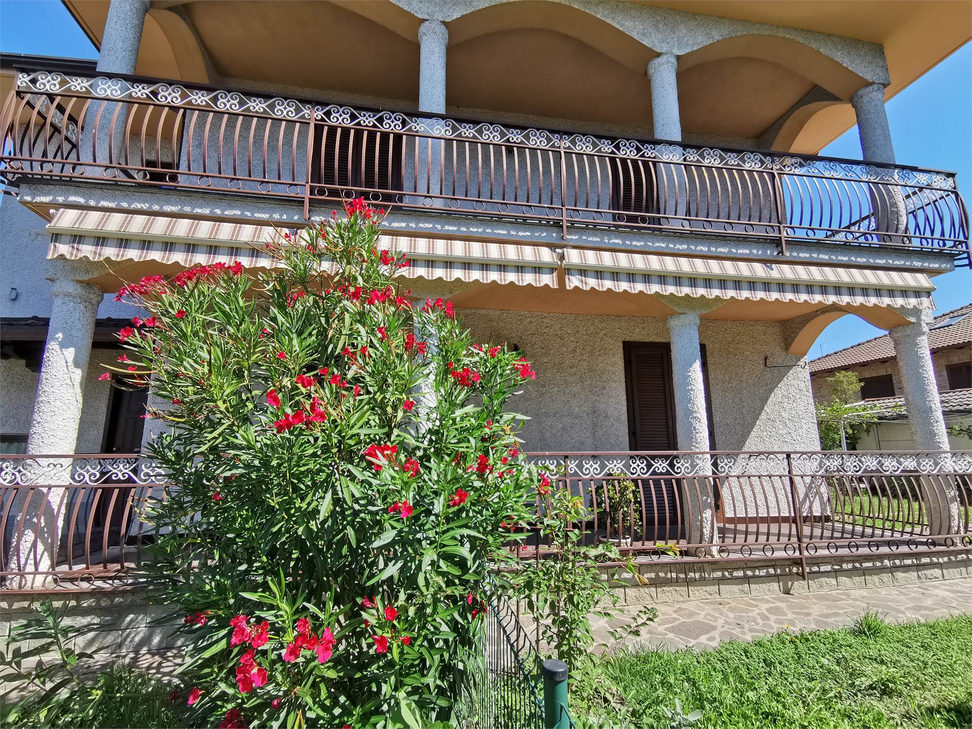 Disponibile al primo piano di una villa bifamiliare un ampio quadrilocale con l'ingresso nel disimpegno, un luminoso salone, una cucina abitabile, tre camere da letto, un bagno, due balconi e un ampio terrazzo. Al piano seminterrato una comoda lavanderia e un ulteriore bagno con doccia. Completano la proprietà il box doppio in larghezza e il giardino privato. Termoautonomo.