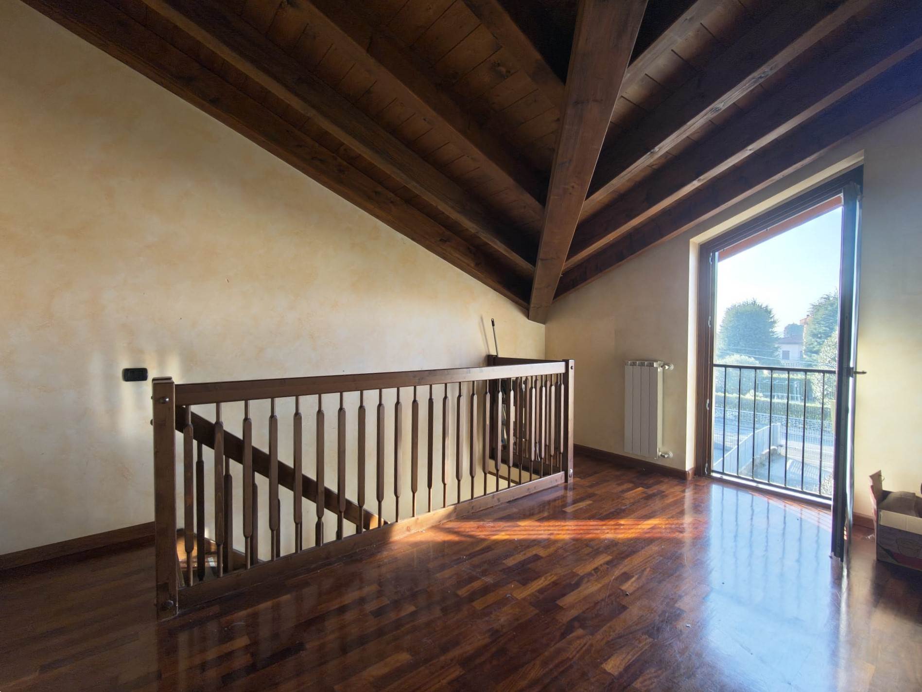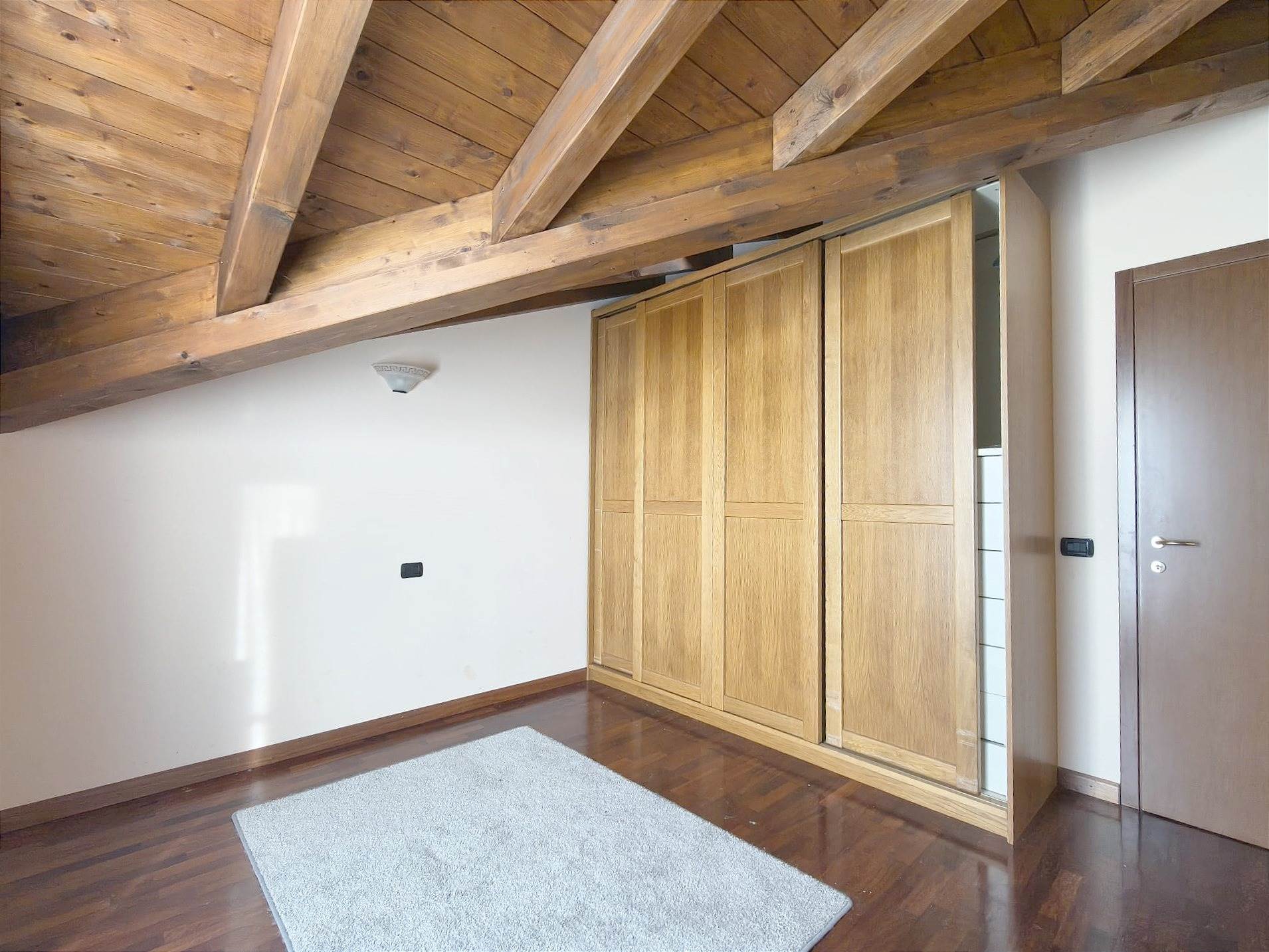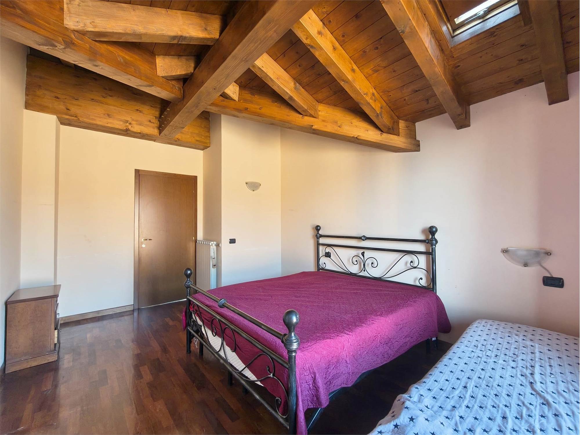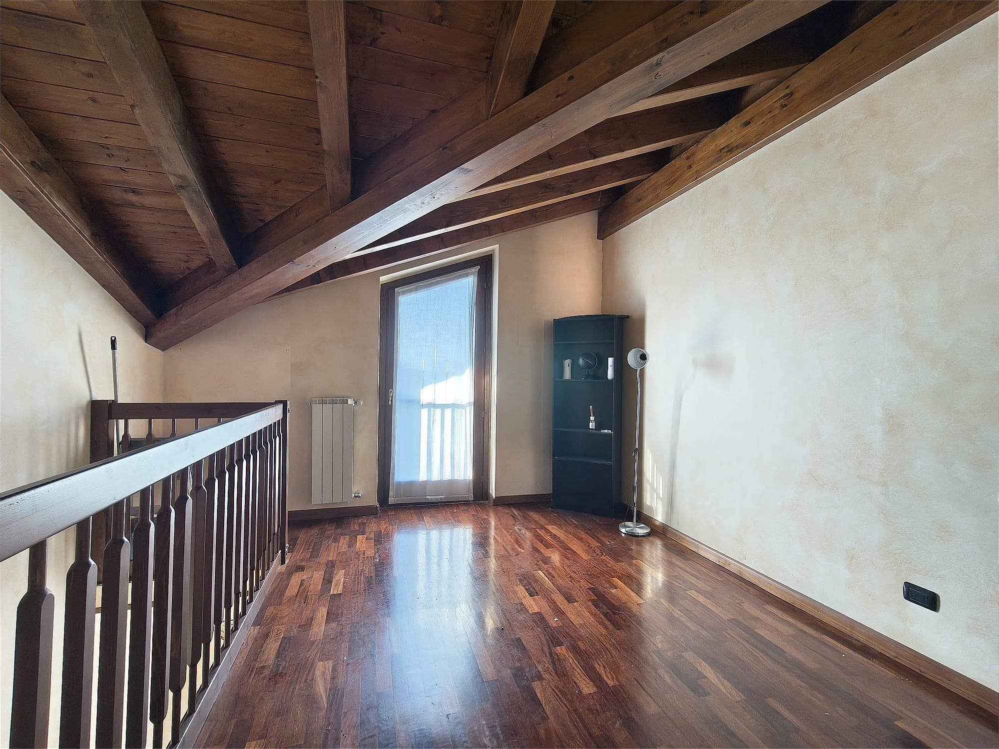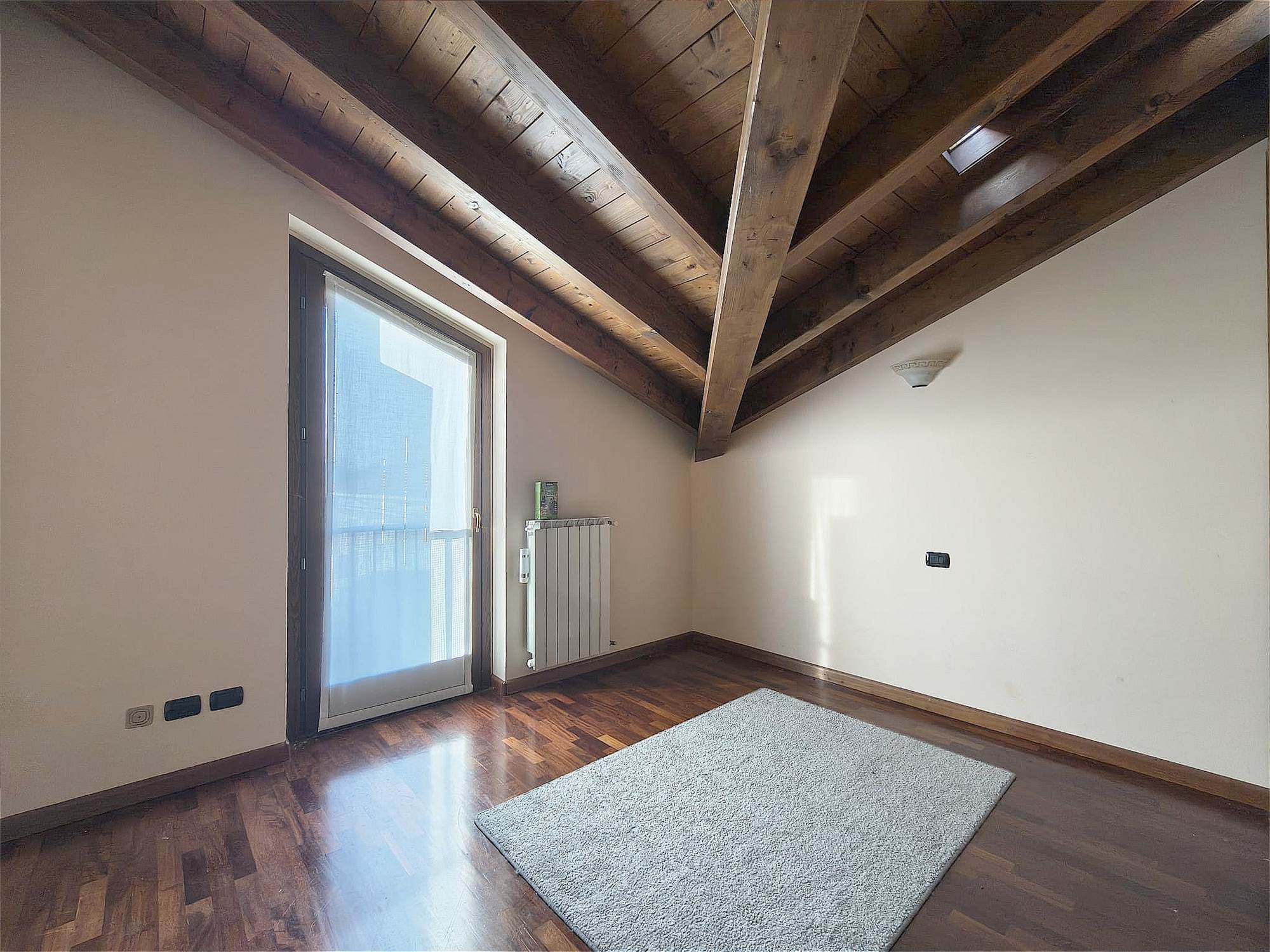 In tranquilla e curata zona residenziale, proponiamo in vendita appartamento di quattro locali in ottimo stato. L'immobile di 95 mq si sviluppa su due piani abitativi. Al primo livello un luminoso soggiorno con angolo cottura bagno e balcone. Al livello superiore, le tre camere e un secondo bagno. L'appartamento si distingue per le raffinate travi a vista e per il pavimemto in parquet, elegante e ben mantenuto. Una soluzione che unisce confort e stile in un contesto residenziale riservato. Box doppio a € 20.000.