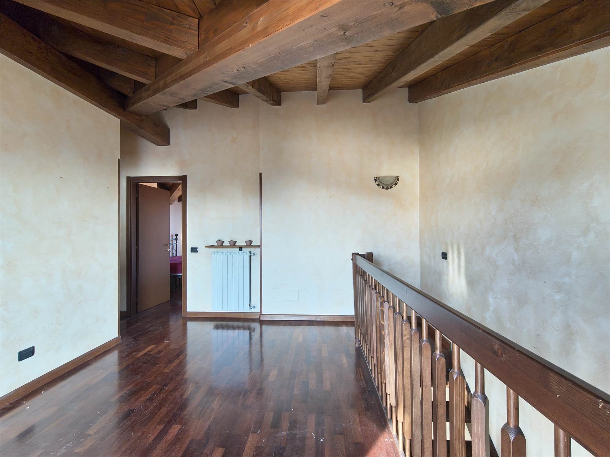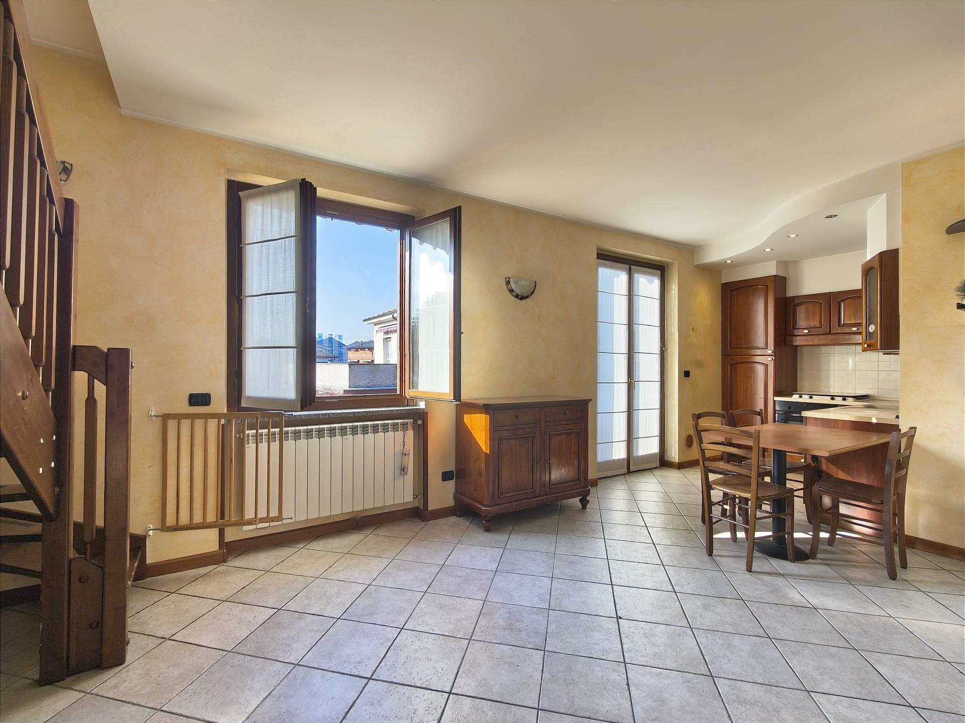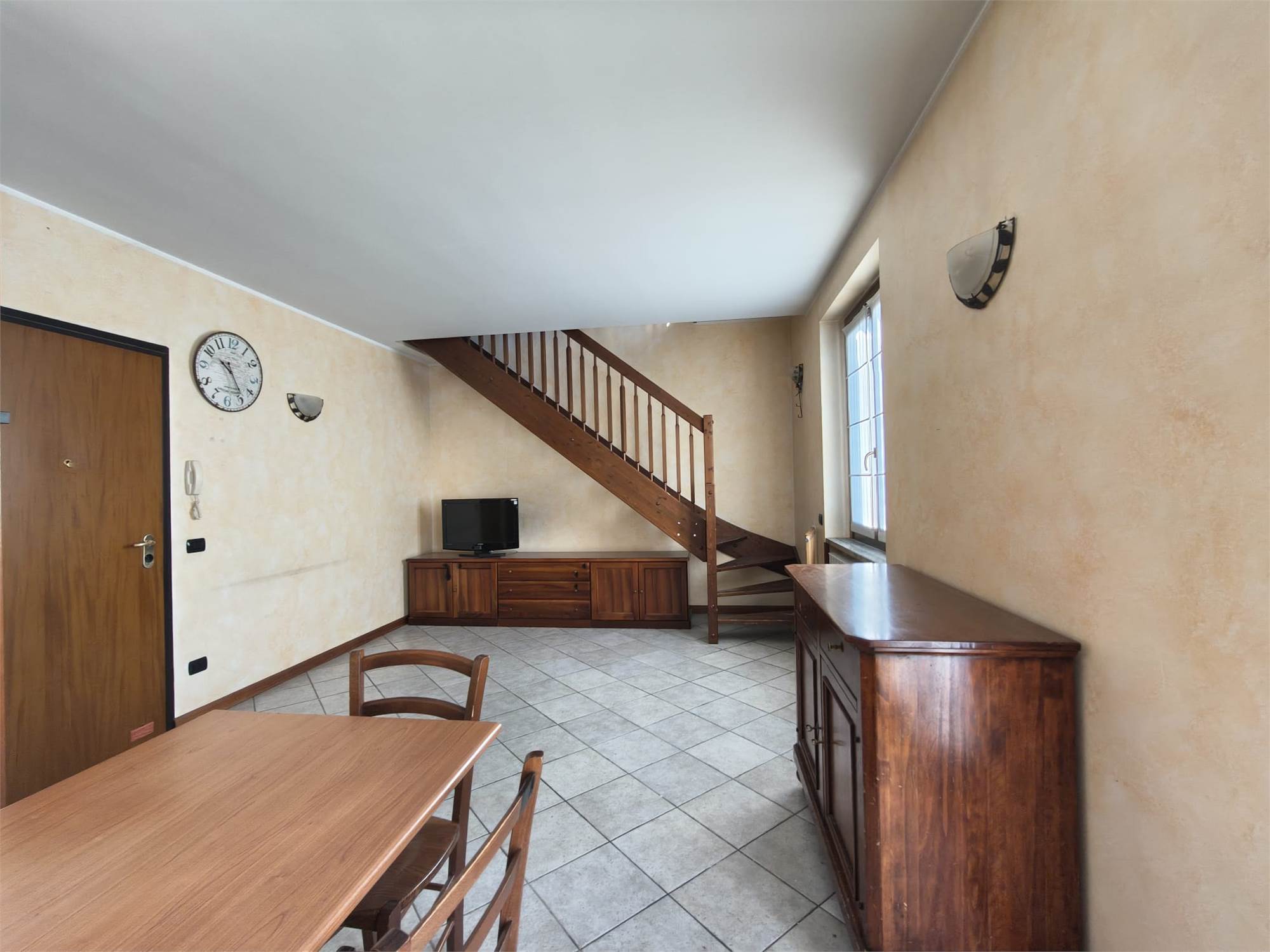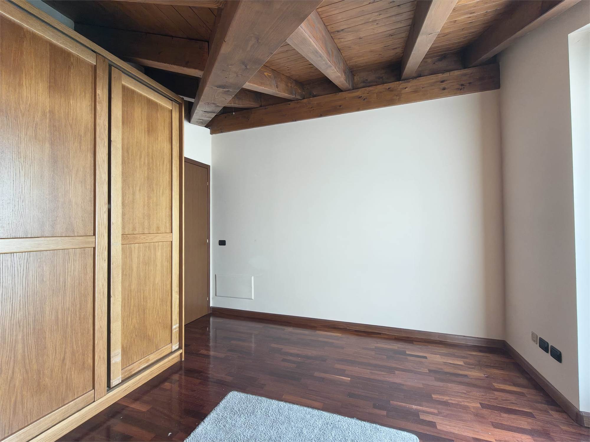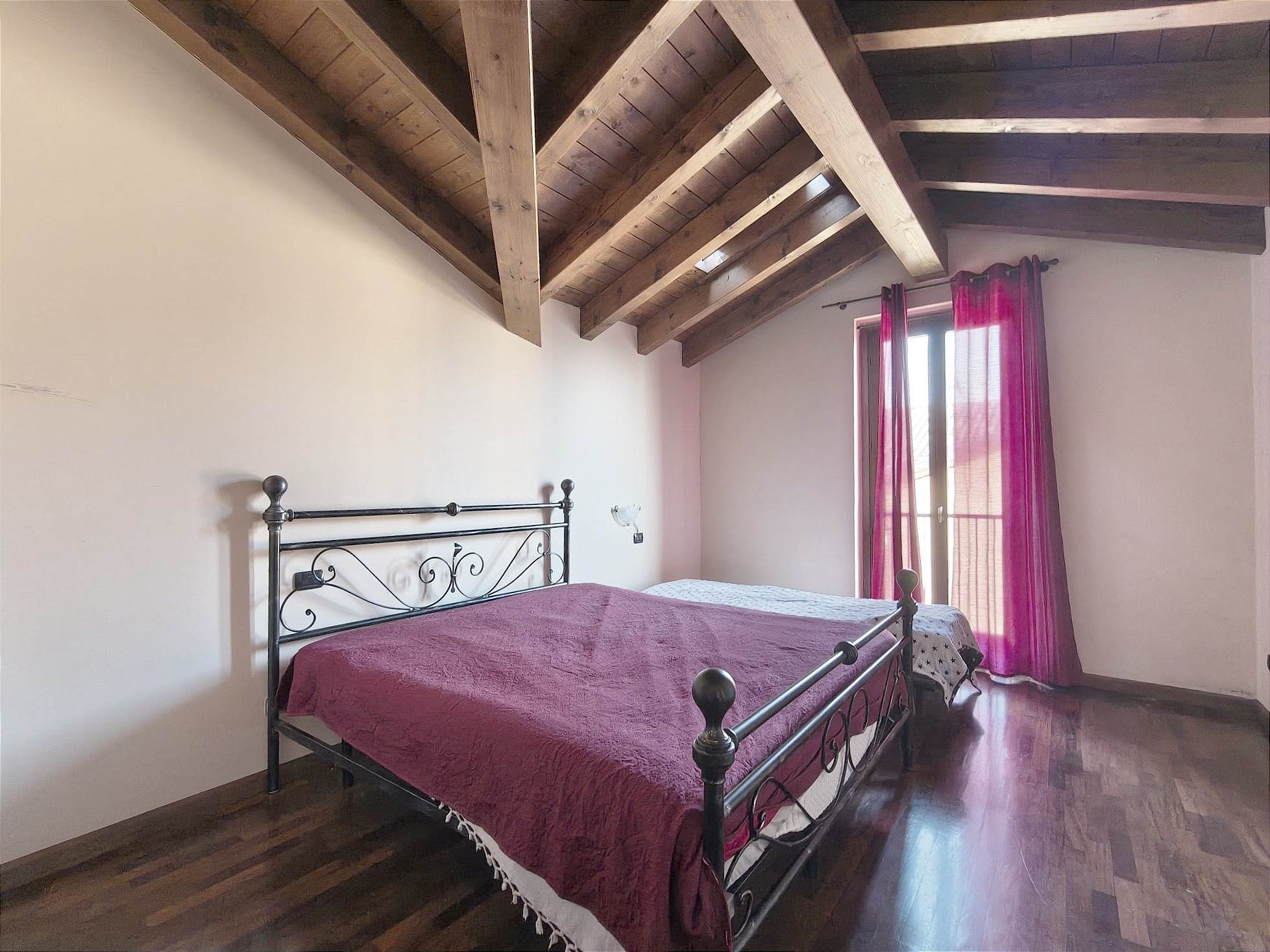 In tranquilla e curata zona residenziale, proponiamo in vendita appartamento di quattro locali in ottimo stato. L'immobile di 95 mq si sviluppa su due piani abitativi. Al primo livello un luminoso soggiorno con angolo cottura bagno e balcone. Al livello superiore, le tre camere e un secondo bagno. L'appartamento si distingue per le raffinate travi a vista e per il pavimemto in parquet, elegante e ben mantenuto. Una soluzione che unisce confort e stile in un contesto residenziale riservato. Box doppio a € 20.000.