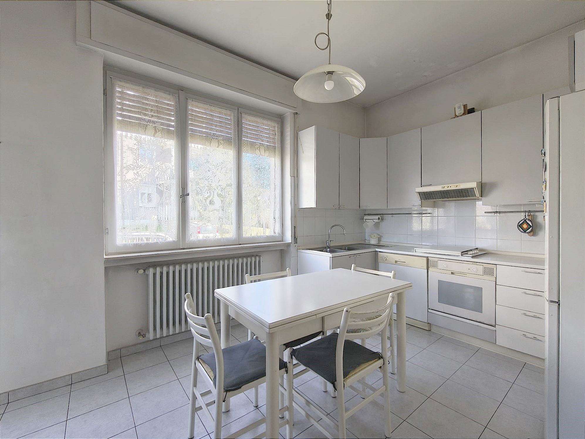 Appartamento di 100 mq al piano terra di una villa bifamiliare degli anni '70. L'immobile ristrutturato internamente nel 2002, comprende una cucina abitabile, una zona giorno spaziosa e luminosa, un bagno ampio, una seconda camera attualmente da ristrutturare e due balconi. La proprietà include la cantina, il box e il giardino privato. Il tetto è stato ristrutturato a nuovo 5 anni fa e la caldaia è del 2011.