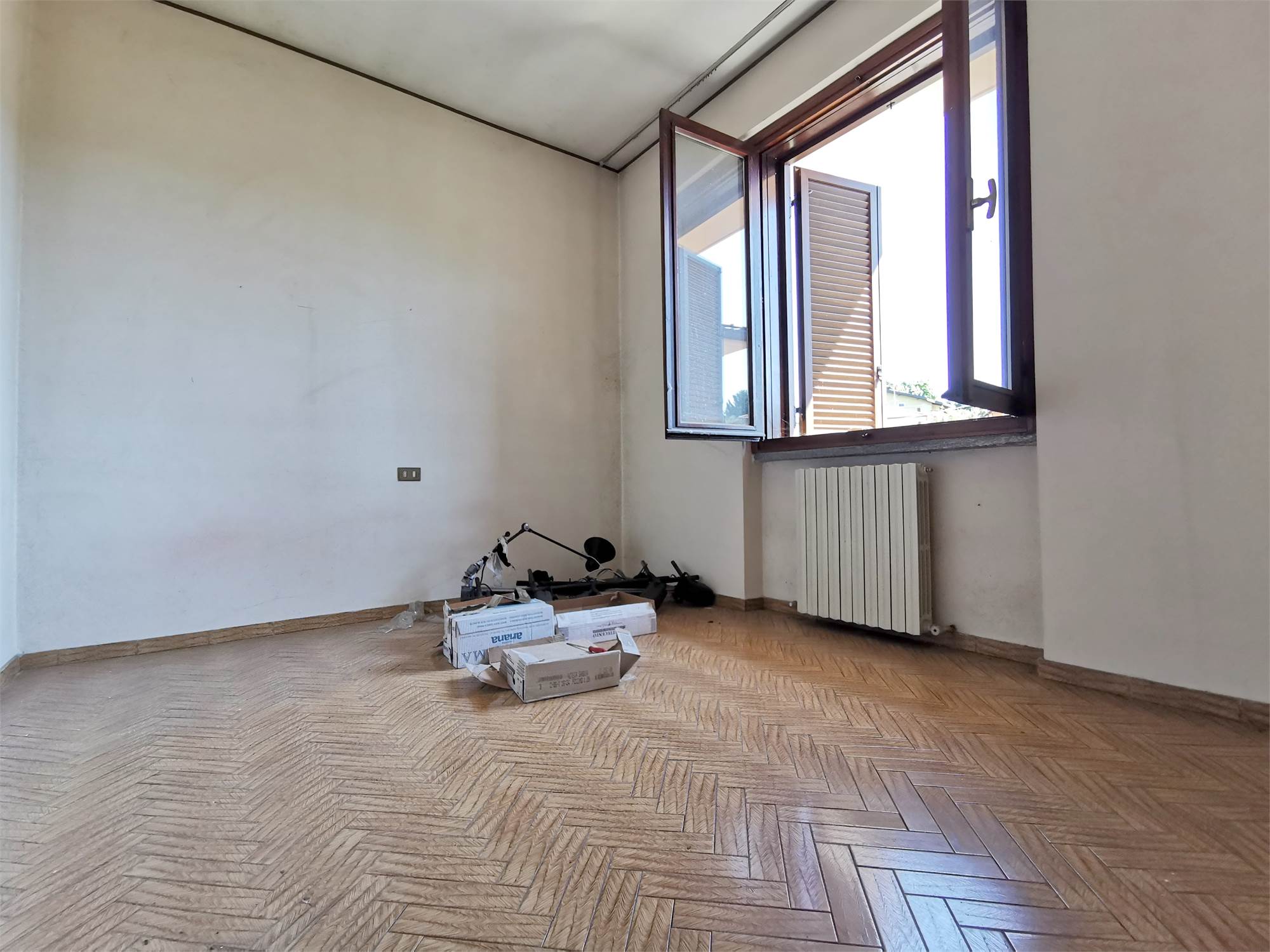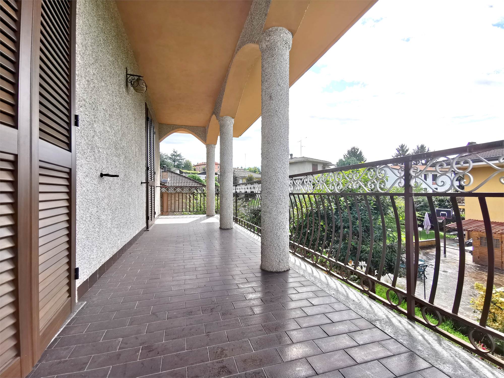 Disponibile al primo piano di una villa bifamiliare un ampio quadrilocale con l'ingresso nel disimpegno, un luminoso salone, una cucina abitabile, tre camere da letto, un bagno, due balconi e un ampio terrazzo. Al piano seminterrato una comoda lavanderia e un ulteriore bagno con doccia. Completano la proprietà il box doppio in larghezza e il giardino privato. Termoautonomo.