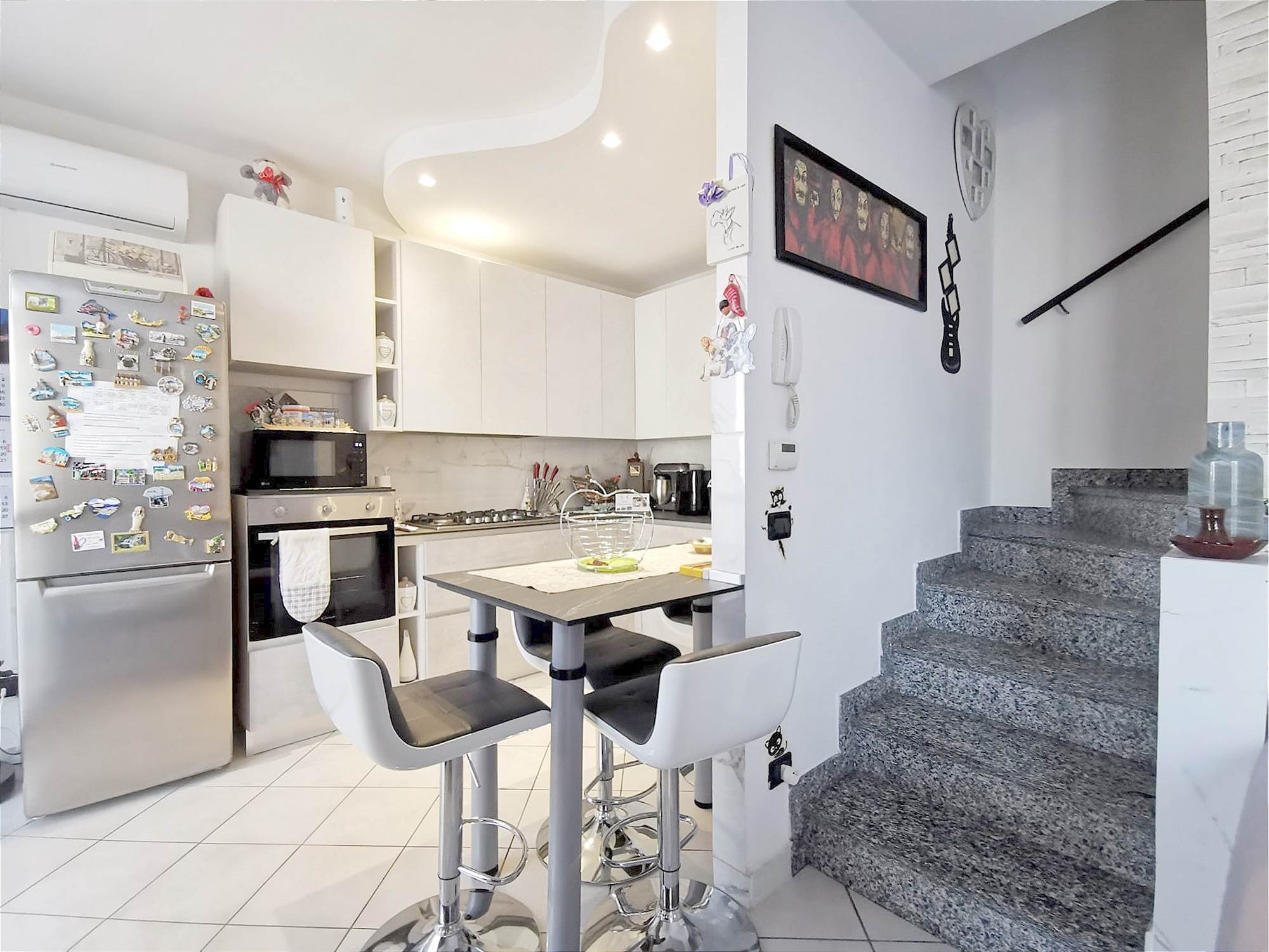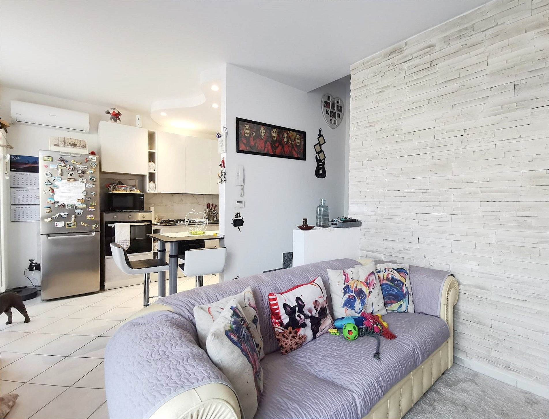 Grazioso bilocale inserito in un contesto residenziale. L'appartamento si sviluppa su due piani abitativi ed è composto dal piano terra con l'ingresso al giardinetto privato, il soggiorno e la cucina. Al piano primo, la camera matrimoniale, il bagno e un ampio balcone. Sono presenti nella zona giorno e nella zona notte i climatizzatori con pompa di calore. Completa la proprietà il box. Termoautonomo e spese condominiali minime.